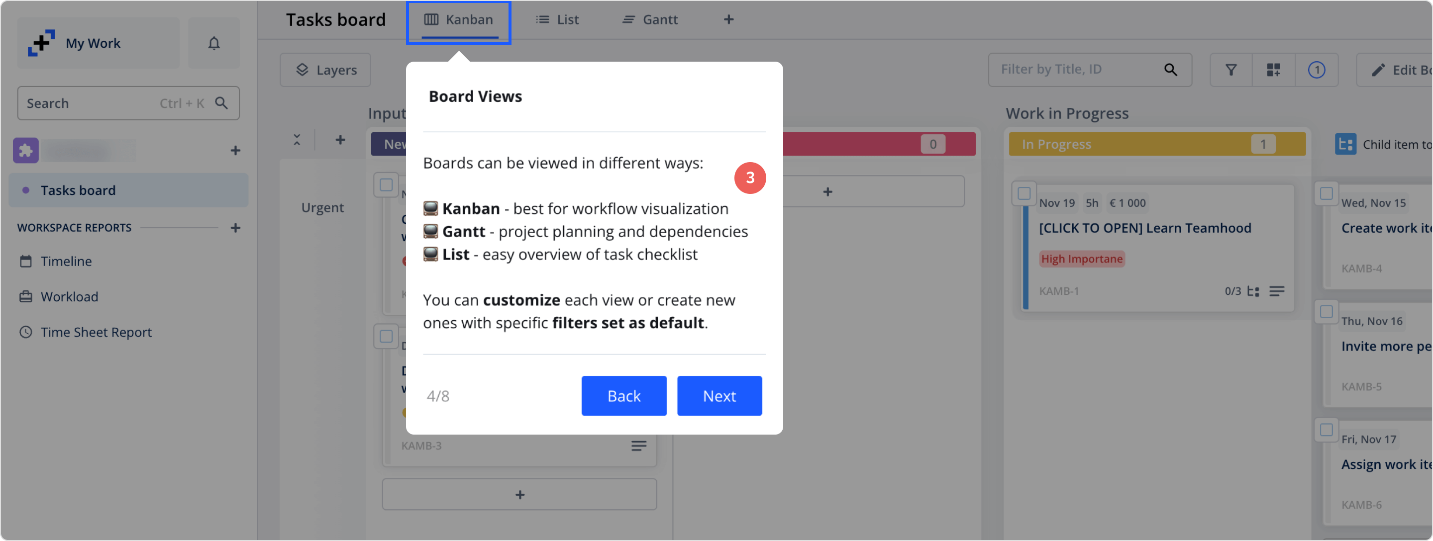 Working together with our customer support who get to see real user data every day, we managed to create meaningful demo content, such as work items, swimlane and column names, tags, etc. This helped new users understand each element as part of a real-world workflow and inspired them to create their own content.
