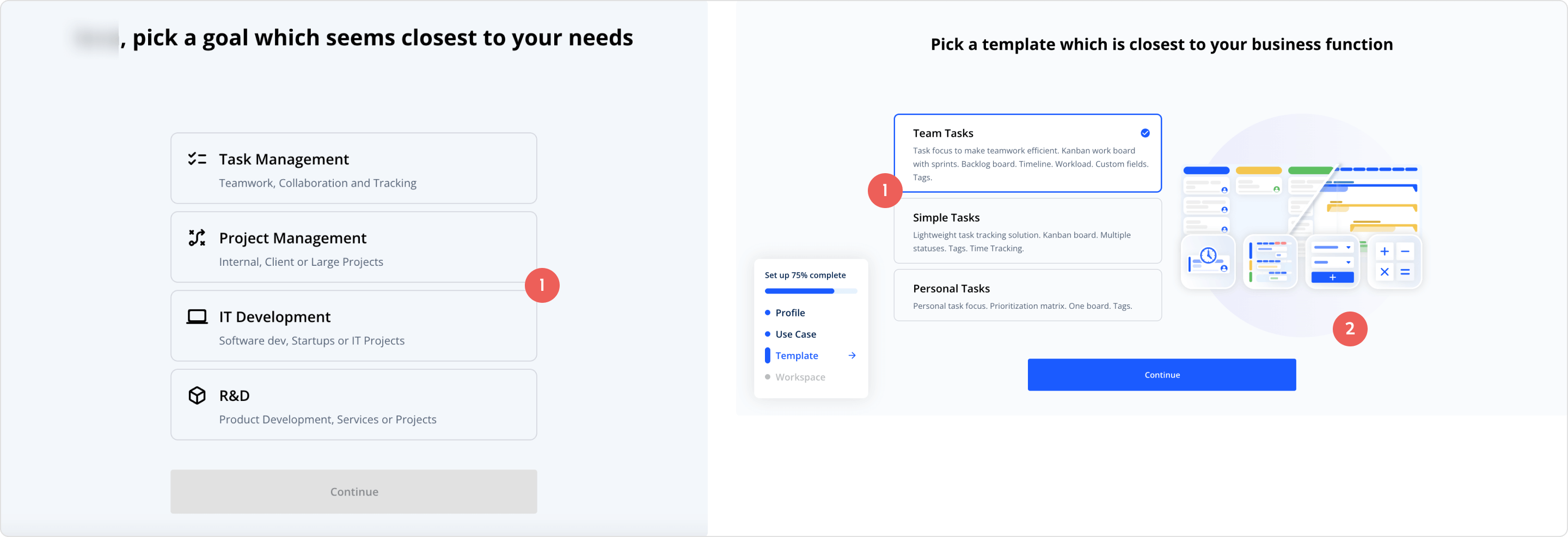 Our data showed that 70% of new users prefer to start with a template during setup, so it was time to really step up our template game. Working together with marketing and sales teams, who have better knowledge of our customer base, we refined the list of templates to better align with our ICP.