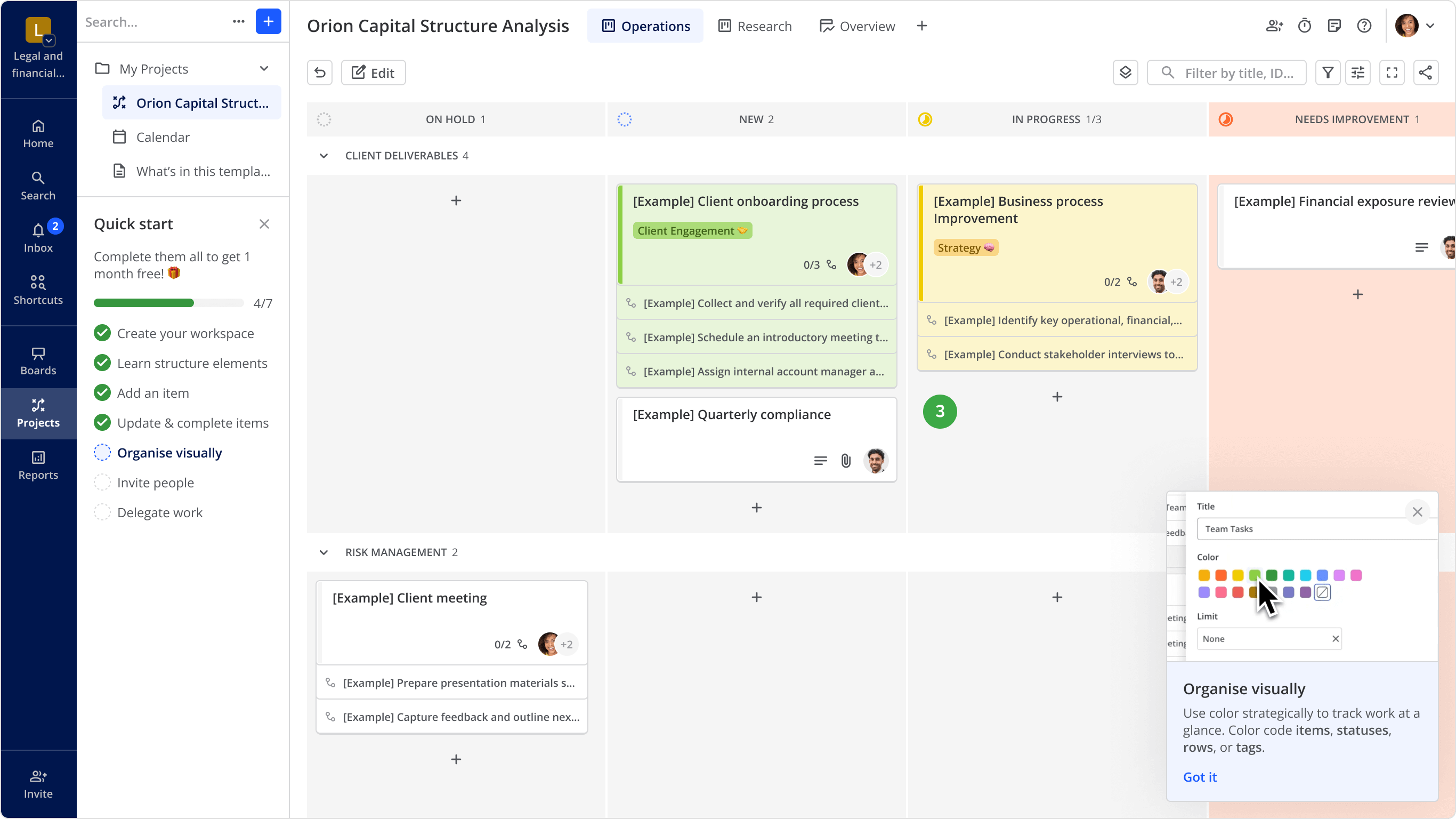 During user observations, we noticed that some users struggled to understand the visual hierarchy and the purpose of certain elements. While Teamhood offers advanced features such as sub-statuses and dependencies, these proved to be less intuitive and harder to grasp for some new users.