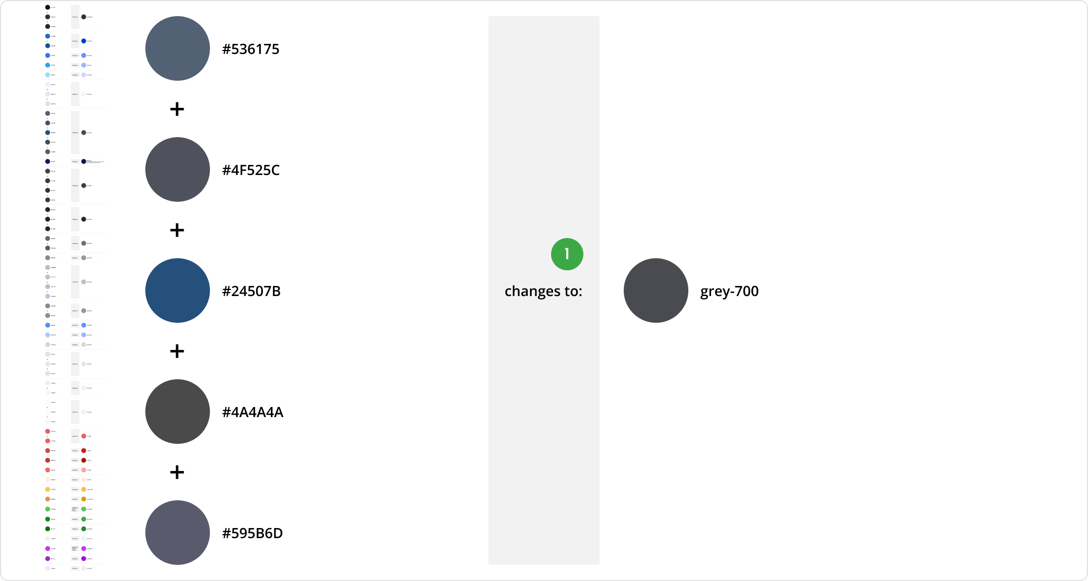 I documented and carefully reviewed the color changes with the engineers. We managed to eliminate 17 redundant colors and consolidate near-duplicate shades into unified, optimal colors, which made picking colors for the UI a lot easier.