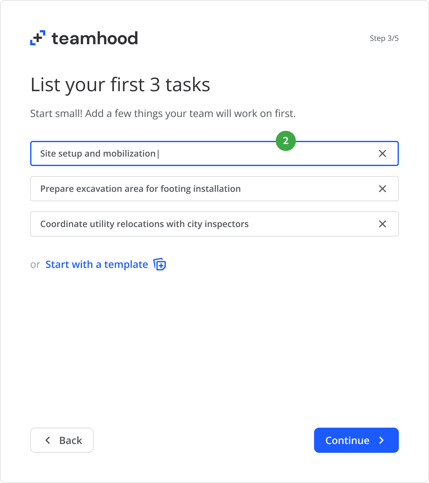 I created a form asking for basic “to-do” input and their prefered plan view. Later, this helped the users immediately recognize their work items and build a mental model of the workspace.