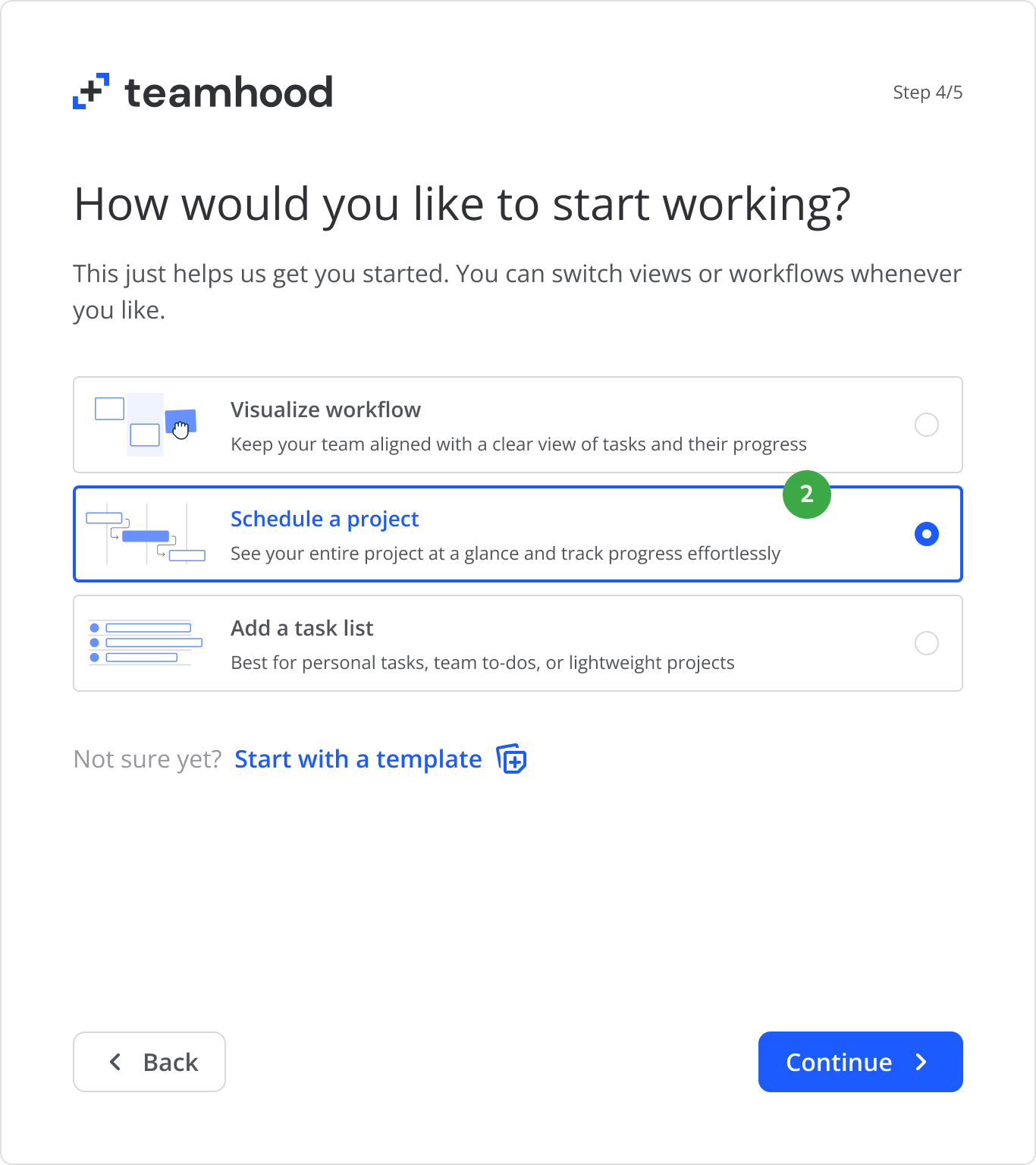 To help users get started effectively, I presented two options: "Start with a template" or "Start from scratch". During session recording observations, I noticed that some users changed their mind midway through setup, so I made it simple to switch to templates at any point.